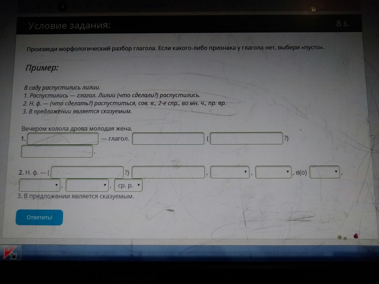 произведи морфологический разбор глагола. Если какого либо признака у глагола нет выбери "пусто".
