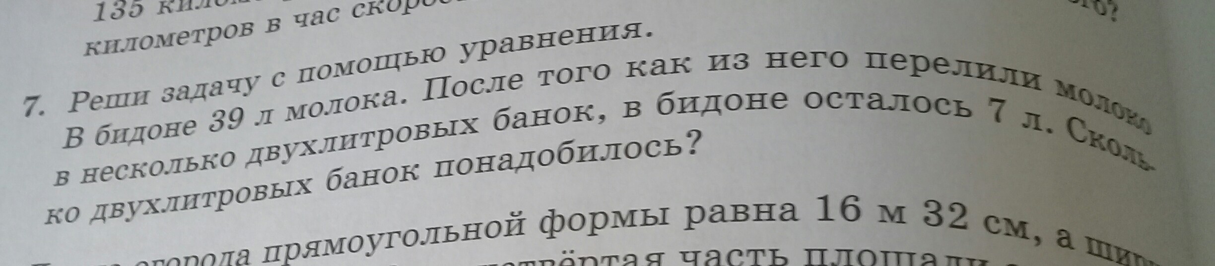 Пусть х - количество двухлитровых банок, тогда х * 2 + 7 = 39, тогда: