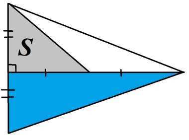 Площадь серого треугольника равна S. Чему равна площадь синего треугольника?