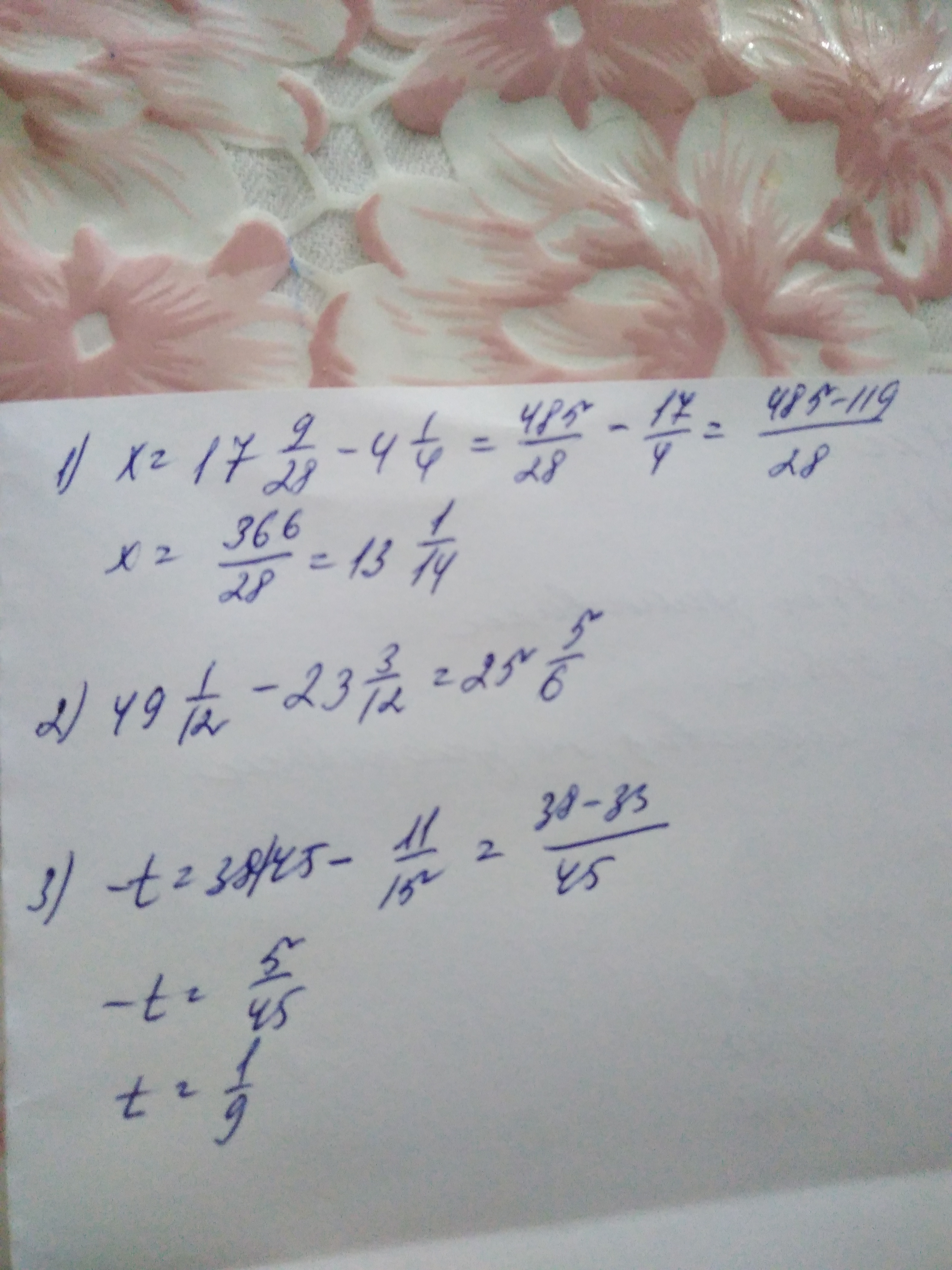 1.Вычисли неизвестное слагаемое x+4 1/14=17 9/28