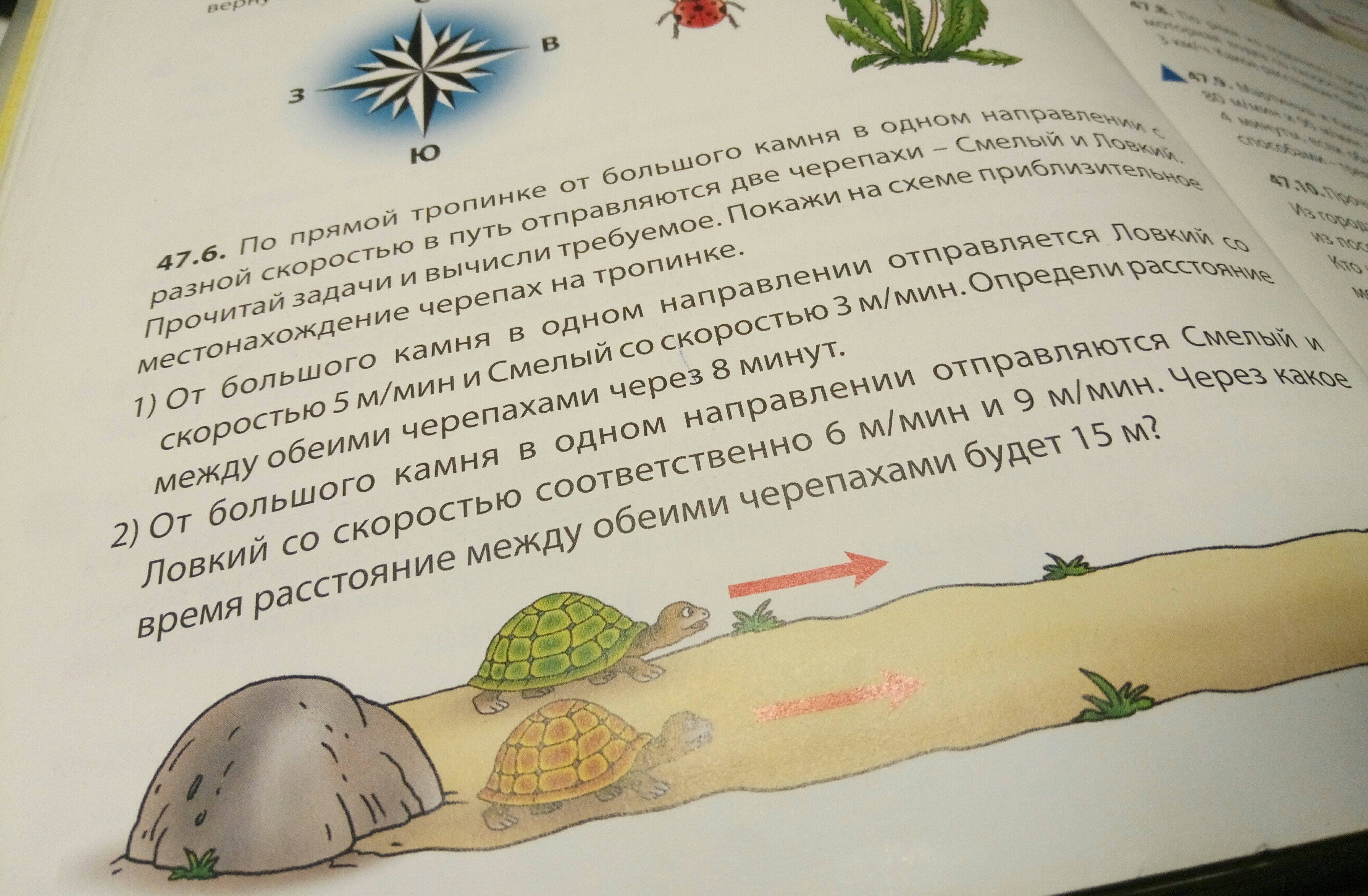 2) 15:3=5(мин)-разница во времени между черепахами через 15 метров.