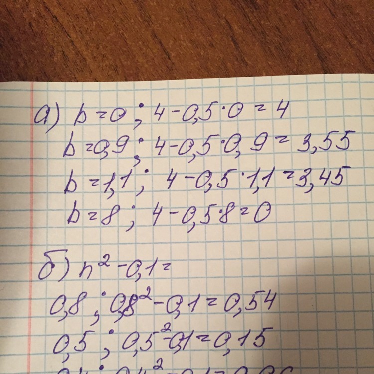 а) 4-0,5b при b=0; 0,9; 1,1; 8;