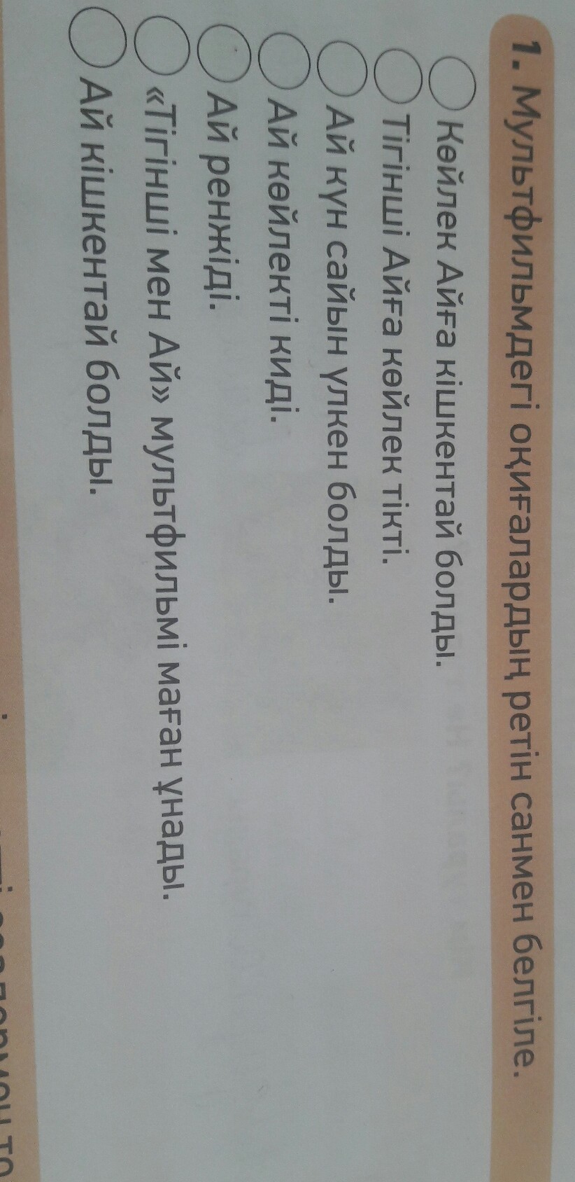 Мультфильмдегі оқиғалардың ретін санмен белгіле.