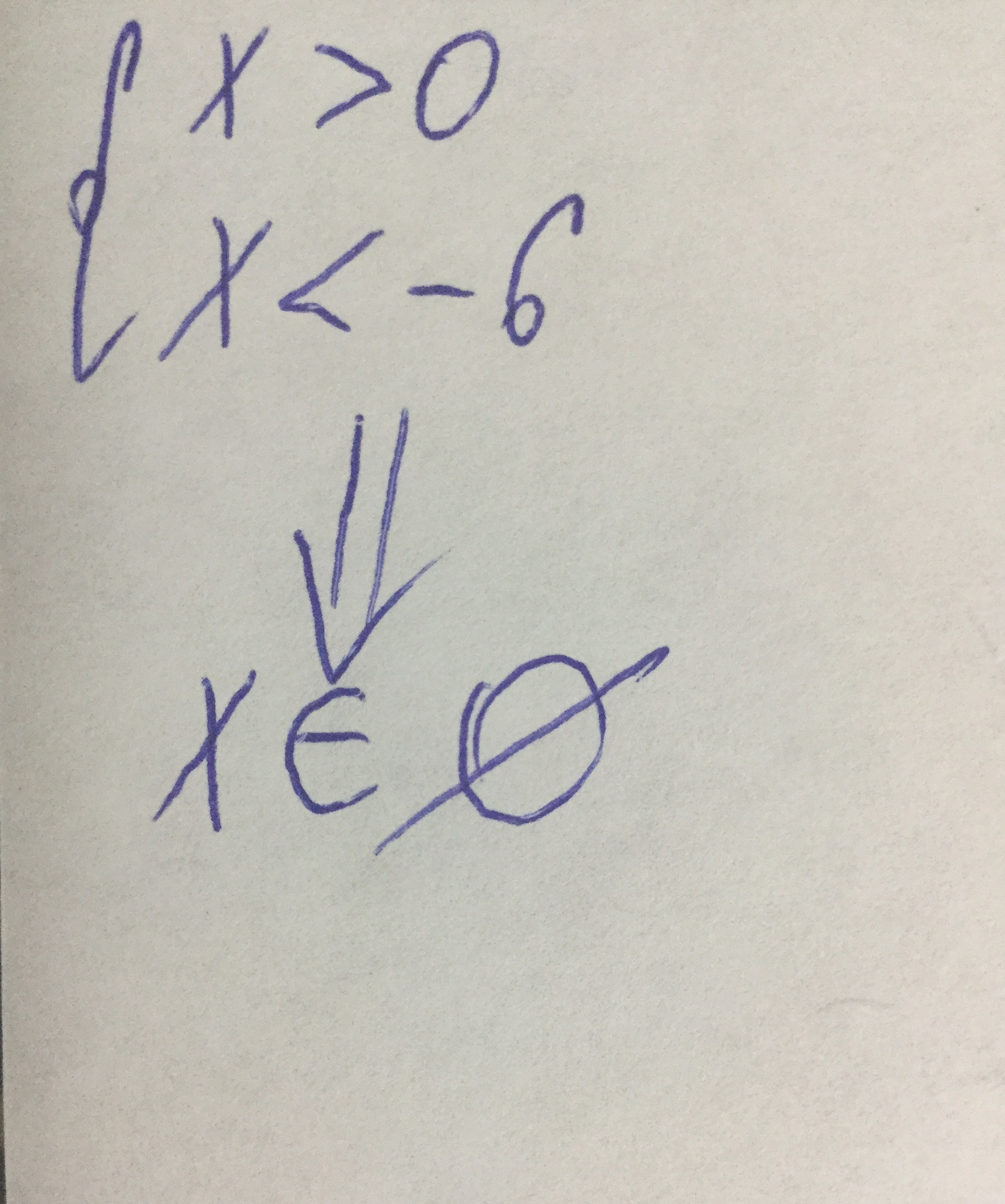 В данном случае делать чертёж крайне нерекомендую, так как это будет противоречить логическому смыслу (ответ: такого неравенства не существует, так как х не может быть одновременно больше 0 и меньше -6)