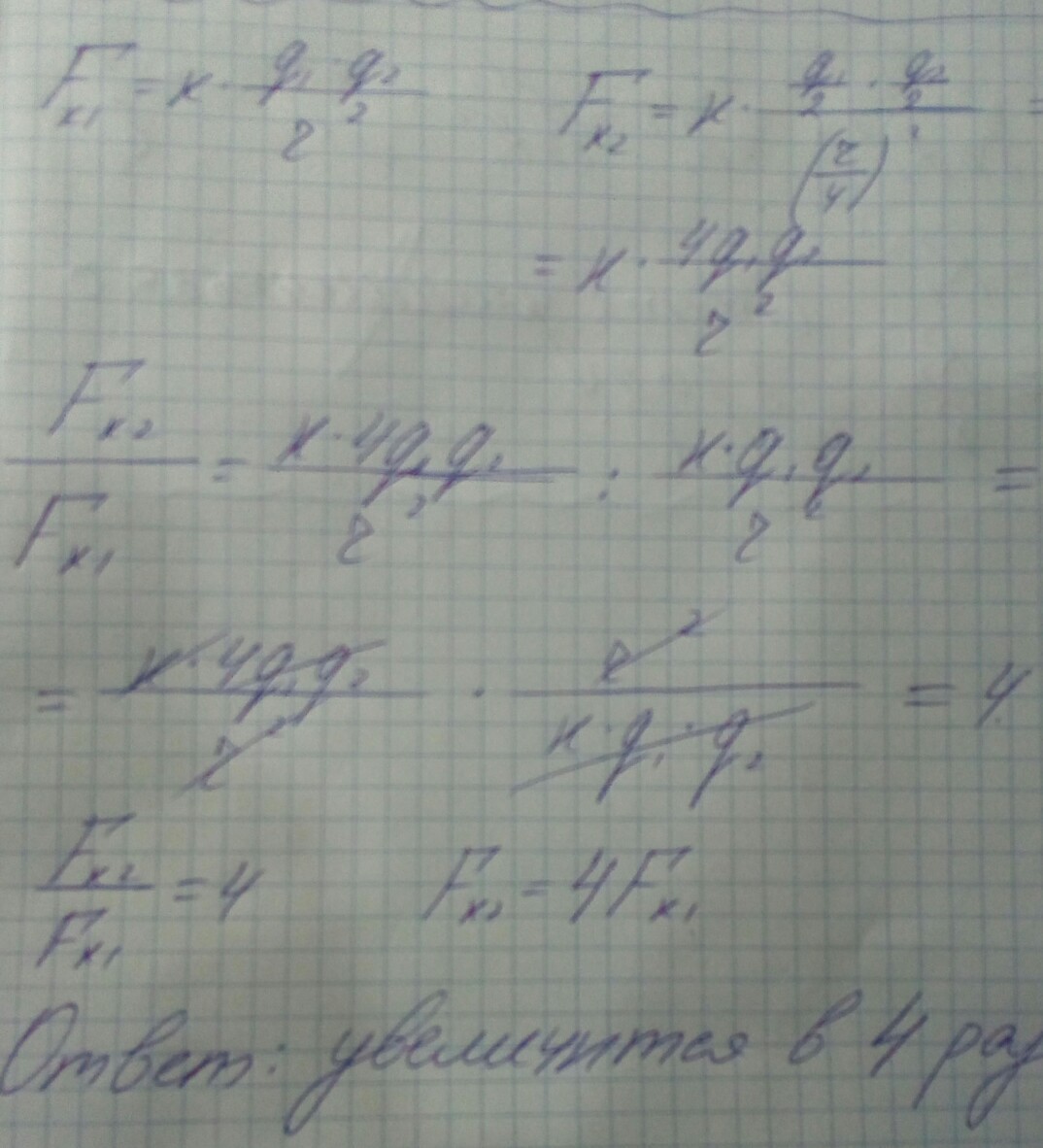 как изменится сила кулоновского взаимодействия двух небольших заряженных шаров если электрические заряды каждого из них уменьшить в 2 раза, а расстояние между шарами уменьшить в 4 раза?