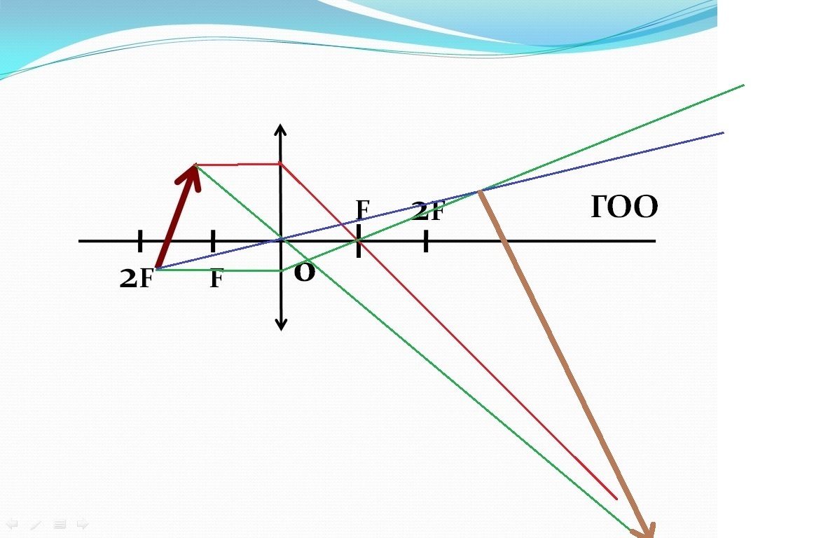 Луч, идущий параллельно линзе, после преломления идет через фокус.