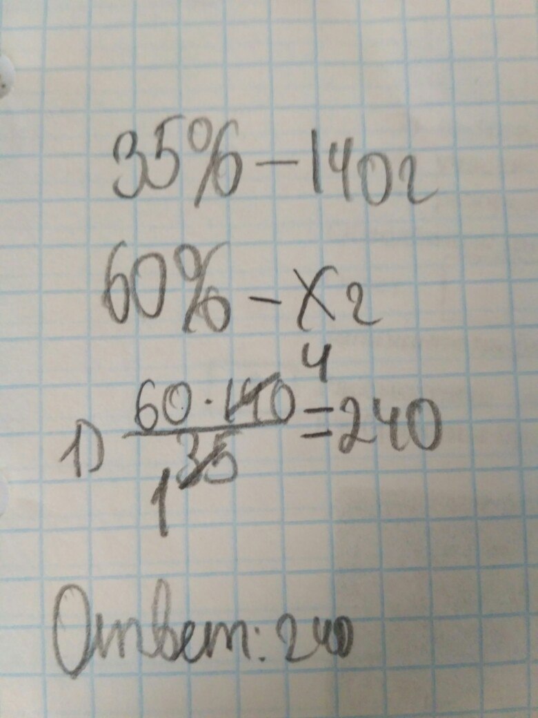 В растворе содержится 35% соли. Если добавить 140 г соли, то в растворе будет содержаться 60% соли. Какова первоначальная масса раствора?