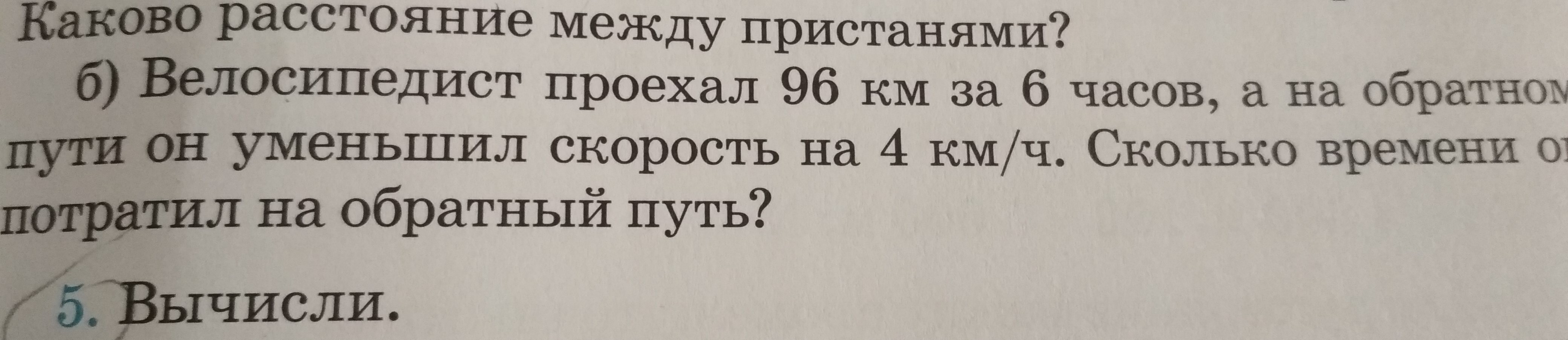 Велосипедист проехал 96 км за 6 часов, а на обратном пути он уменьшил скорость на 4 км/ ч. Сколько времени он потратил на обратный путь?
