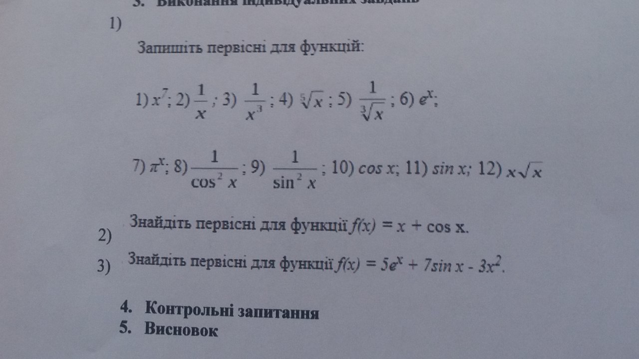 2. Найдете первоначальные для функций