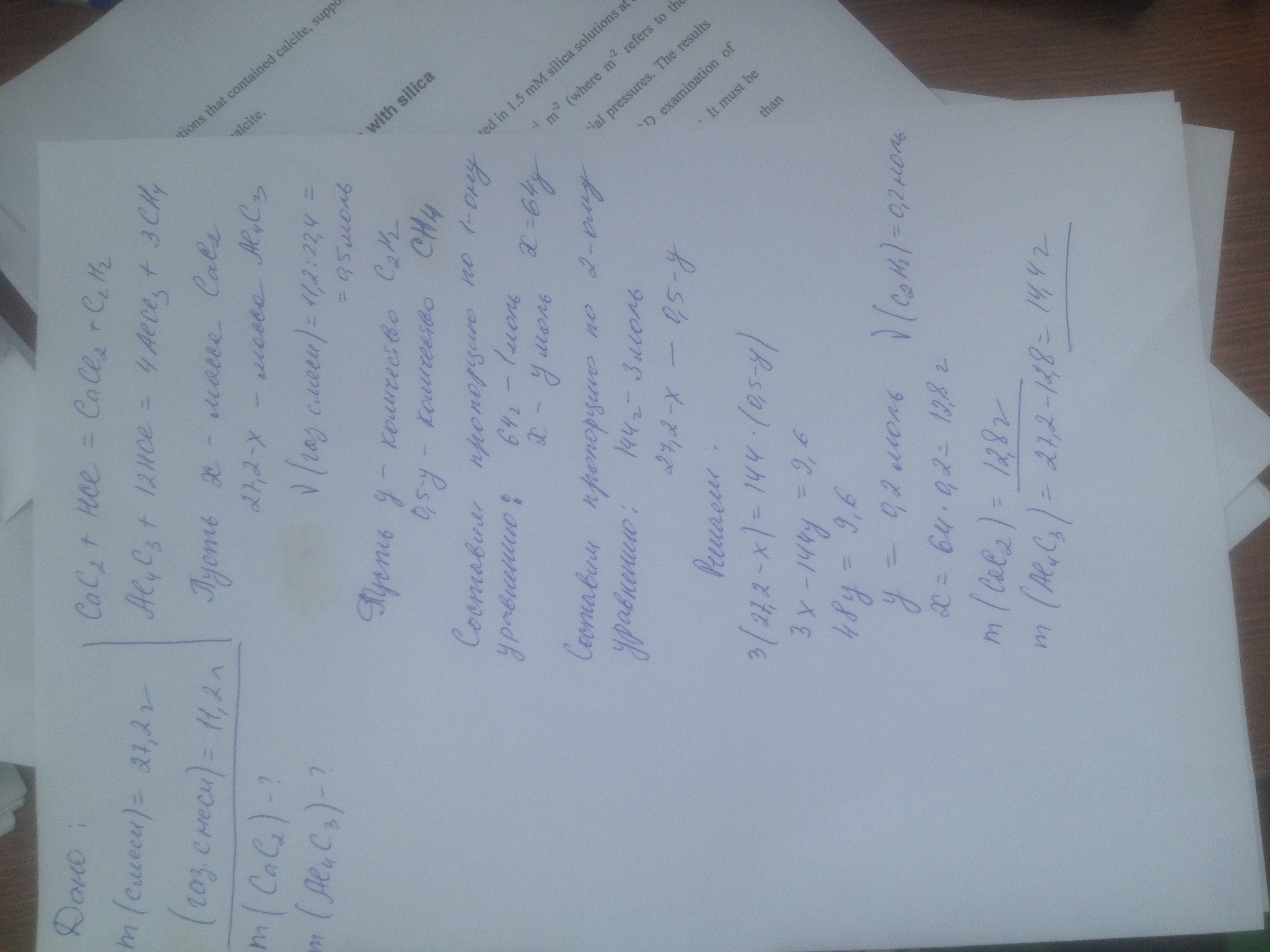 При растворении 27,2 г смеси карбидов кальция и алюминия в соляной кислоте получилось 11,2 л смеси ацетилена и метана (условия нормальные). Определите содержание карбидов в смеси.