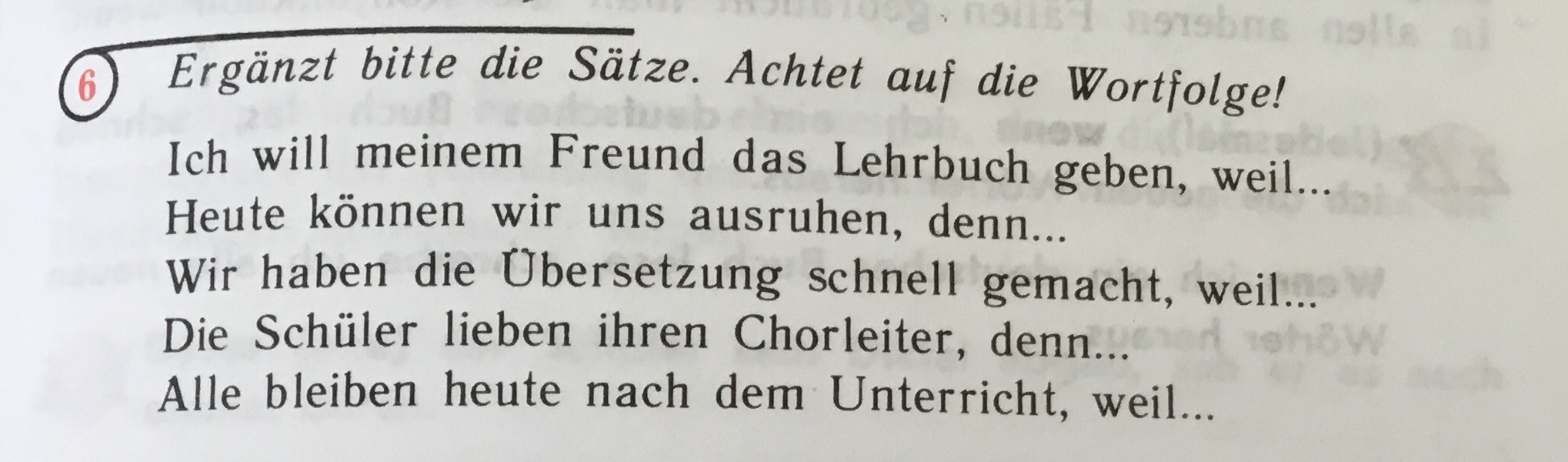 1. Ich will meinem Freund das Lehrbuch geben, weil er sein verloren hat.