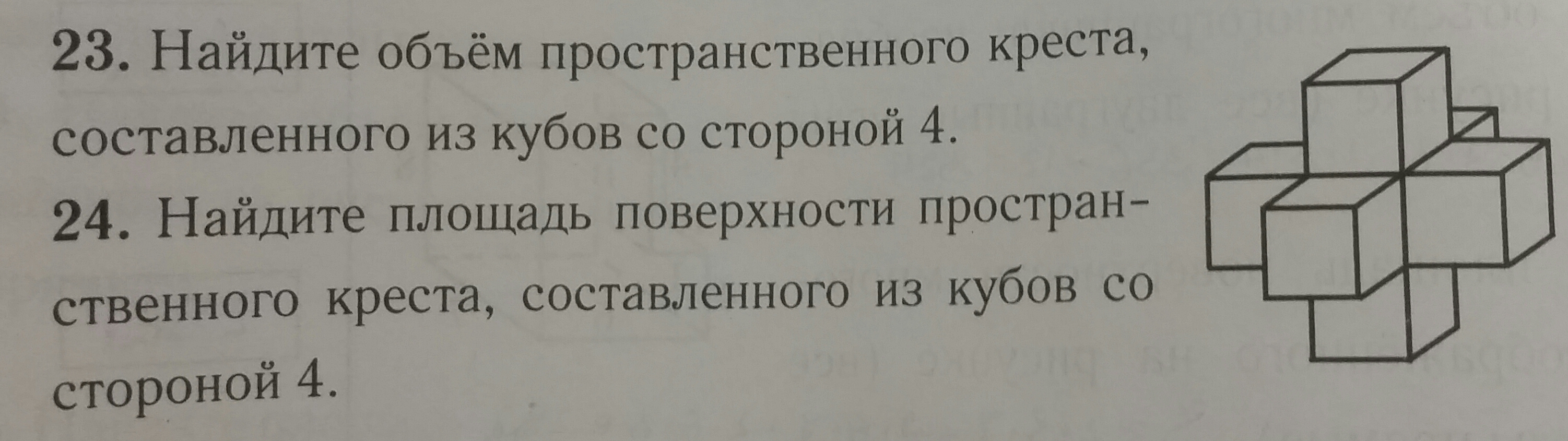 V = 7 × 4^3 = 7 × 64 = 448 куб ед