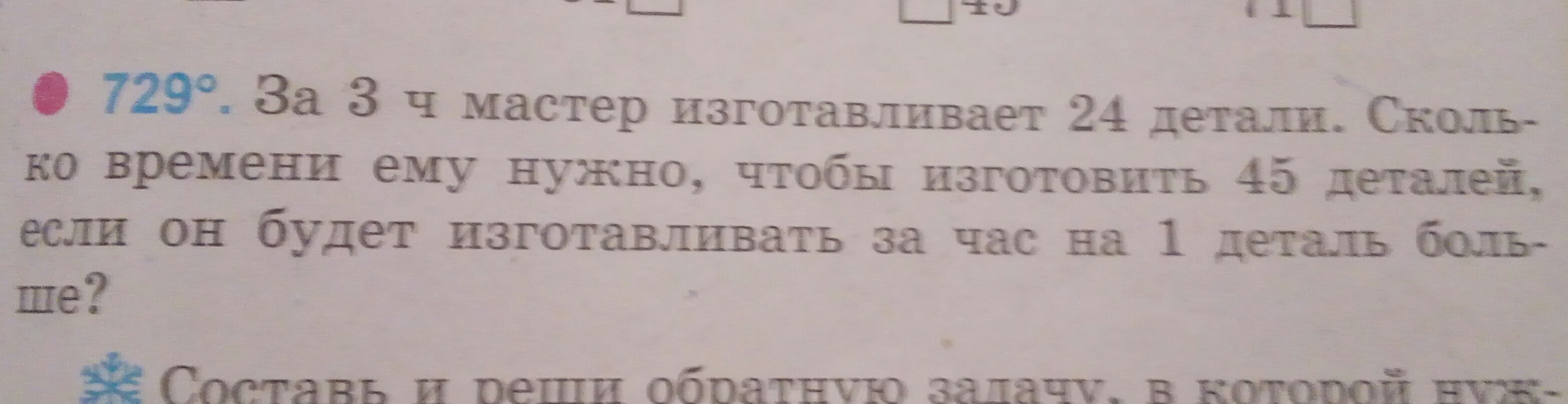 ВІДПОВІДЬ:ЩОБ ВИГОТОВИТИ 45 ДЕТАЛЕЙ МАЙСТРУ ПОТРИБНО 5 ГОДИН