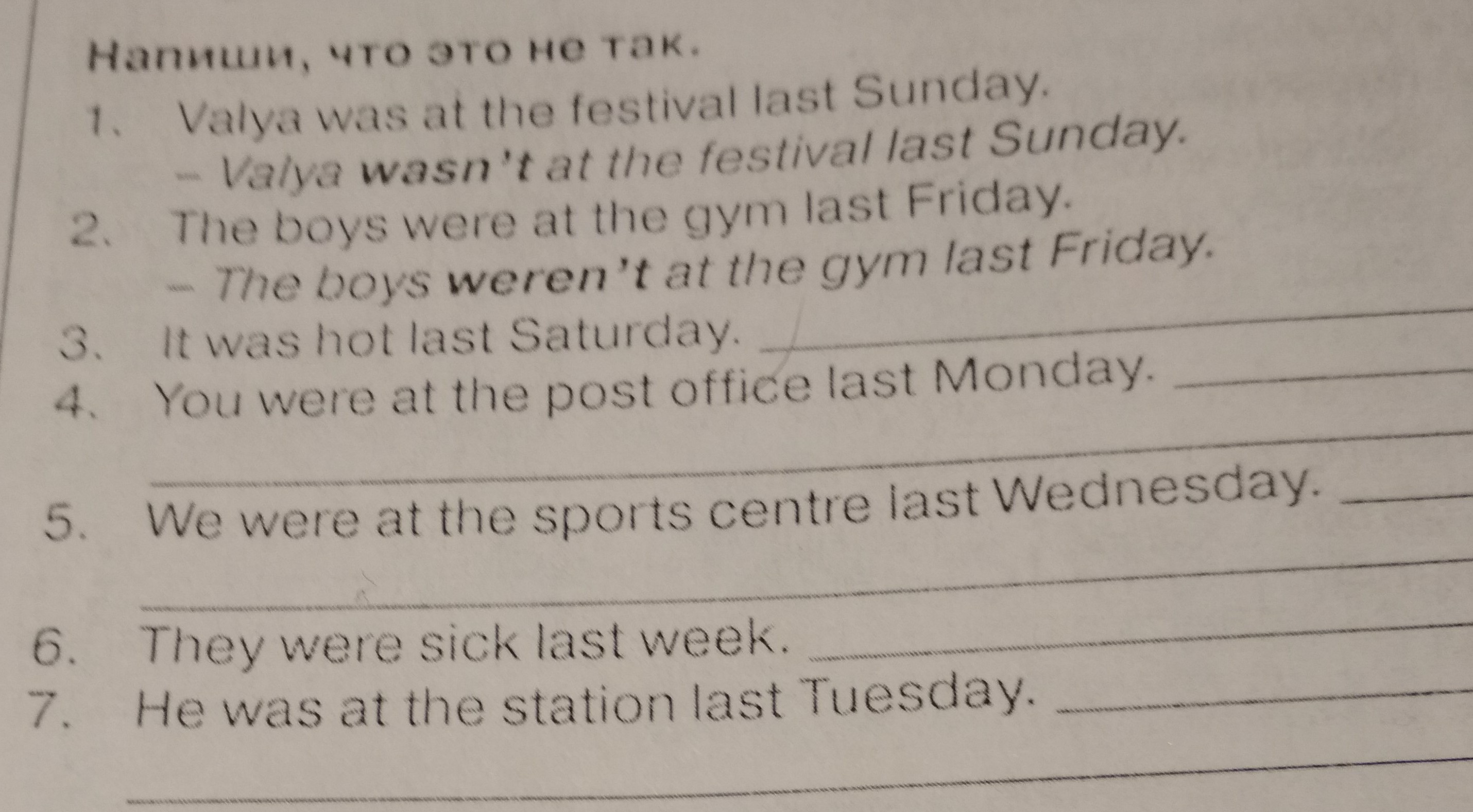 5. We weren't at the sports centre last Wednesday.