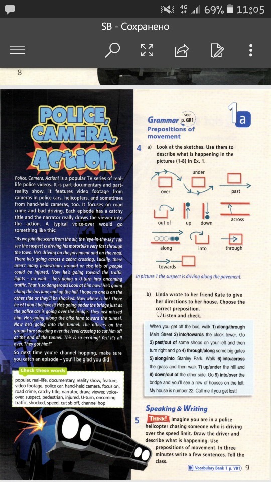 Полиция, камера, действие! Это популярный сериал в режиме реального видео о полиции. Она является частью документального и частично реалити - шоу. Это видео кадры из камеры в полицейском автомобили, вертолетов, а иногда с ручной камеры. Она сосредоточена на дороге показывает преступления и плохое вождение. Каждая серия имеет броское название и рассказчик действительно вовлекает зрителя в действие. Типичный! Голос за кадром говорит что-то вроде этого: А мы присоединяемся к сцене с неба мы можем увидеть подозреваемого , который ехал очень быстро на своем мотоцикле через город. Он ехал по тротуару, а на дороге по зебре. К счастью есть не так уж много пешеходов вокруг или большого количества людей, которые могли быть ранены. Сейчас он направляется в сторону движения, он делает разворот на полосу встречного движения. Это так опасно! Посмотрите на него сейчас. Он едет вдоль автобусной полосы и в гору, надеюсь никто не поедет с другой стороны или они будут в шоке. Теперь где он? Есть, он появился. Вижу что он едет под мостом а полицейская машина едет по мосту. Они просто пропустили его. Он едет по велосипедной дорожке в сторону тоннеля. Сейчас он едет в тоннеля прямо на офицеров и несется по земле над уровнем пересечения, что бы отрезать ему путь дальше в конце тоннеля - это так волнительно! Да, все, они поймали его. Так что в следующий раз убедитесь что вы смотрите эпизод - вы будите очень радостны!