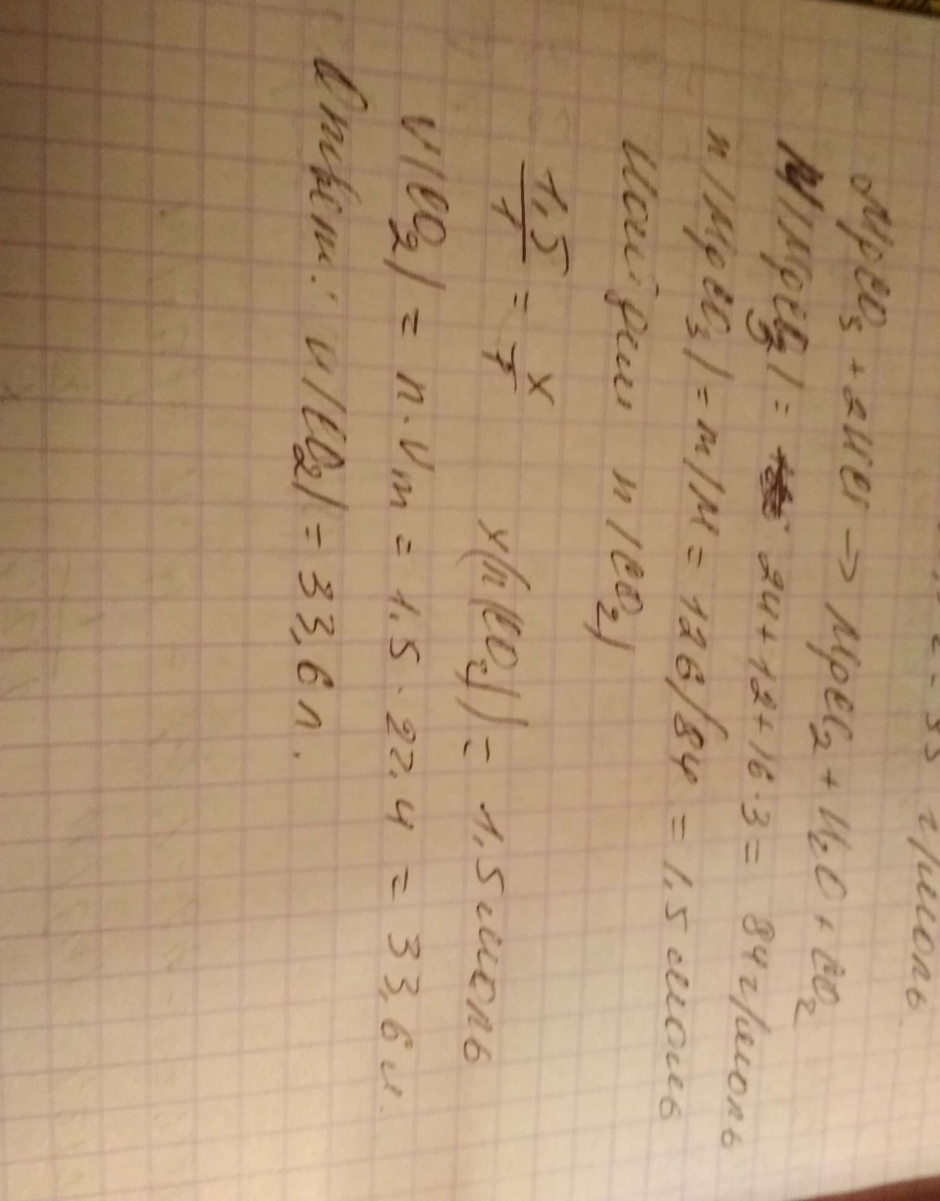 Какой объем углекислого газа образуется при взаимодействии магний карбоната масой 126 гр с хлоридной кислотой?