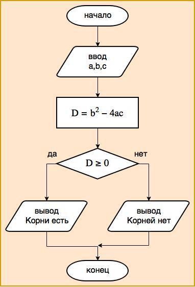 Написать блок схему: заданы коэффициенты квадратного уравнения а,в,с устанавливающую имеет ли уравнение дейсивительные корни