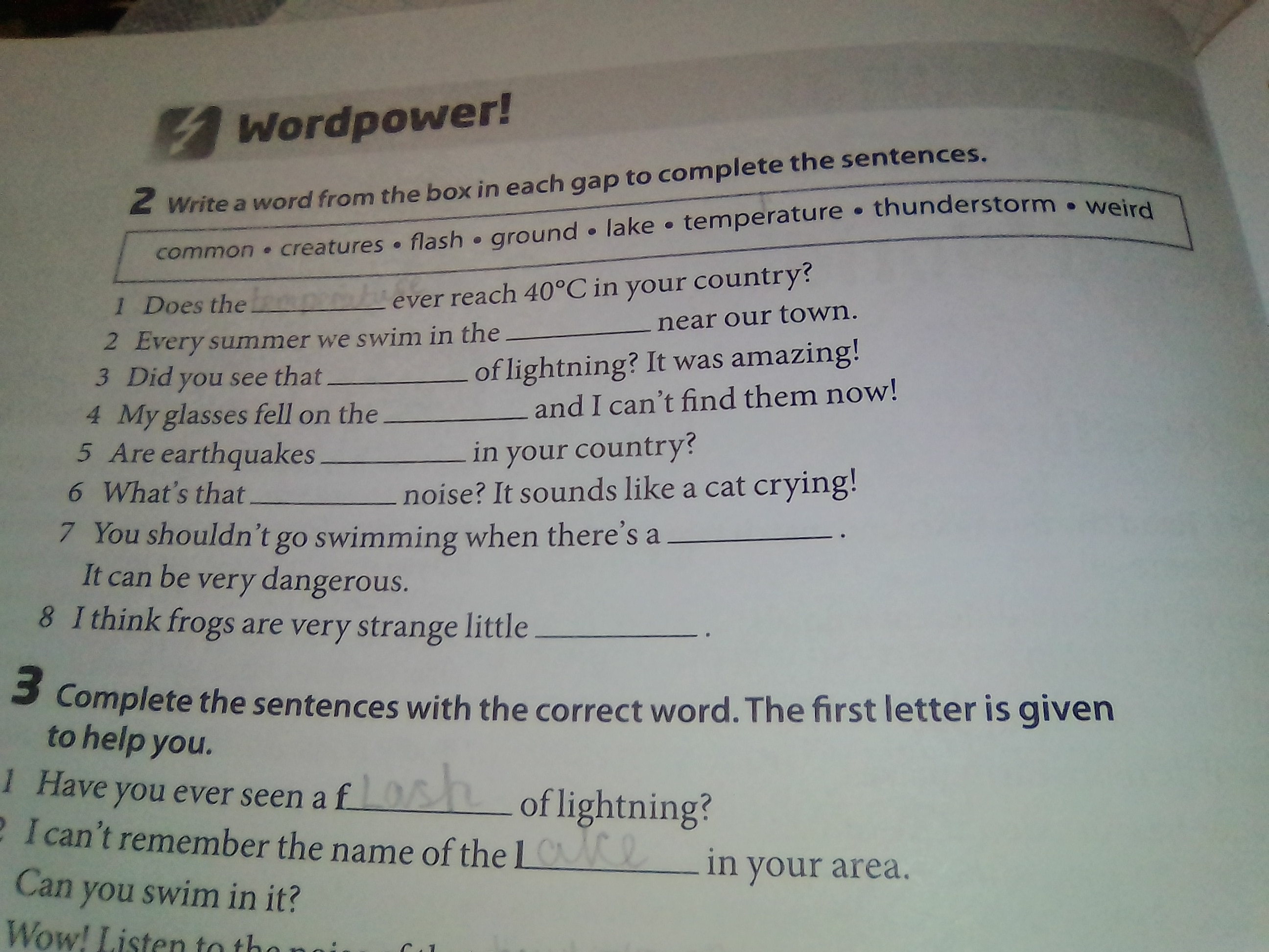 1 temperature 2 lake 3 flash 4 ground 5 common 6 weird 7 thunderstorm 8 creatures