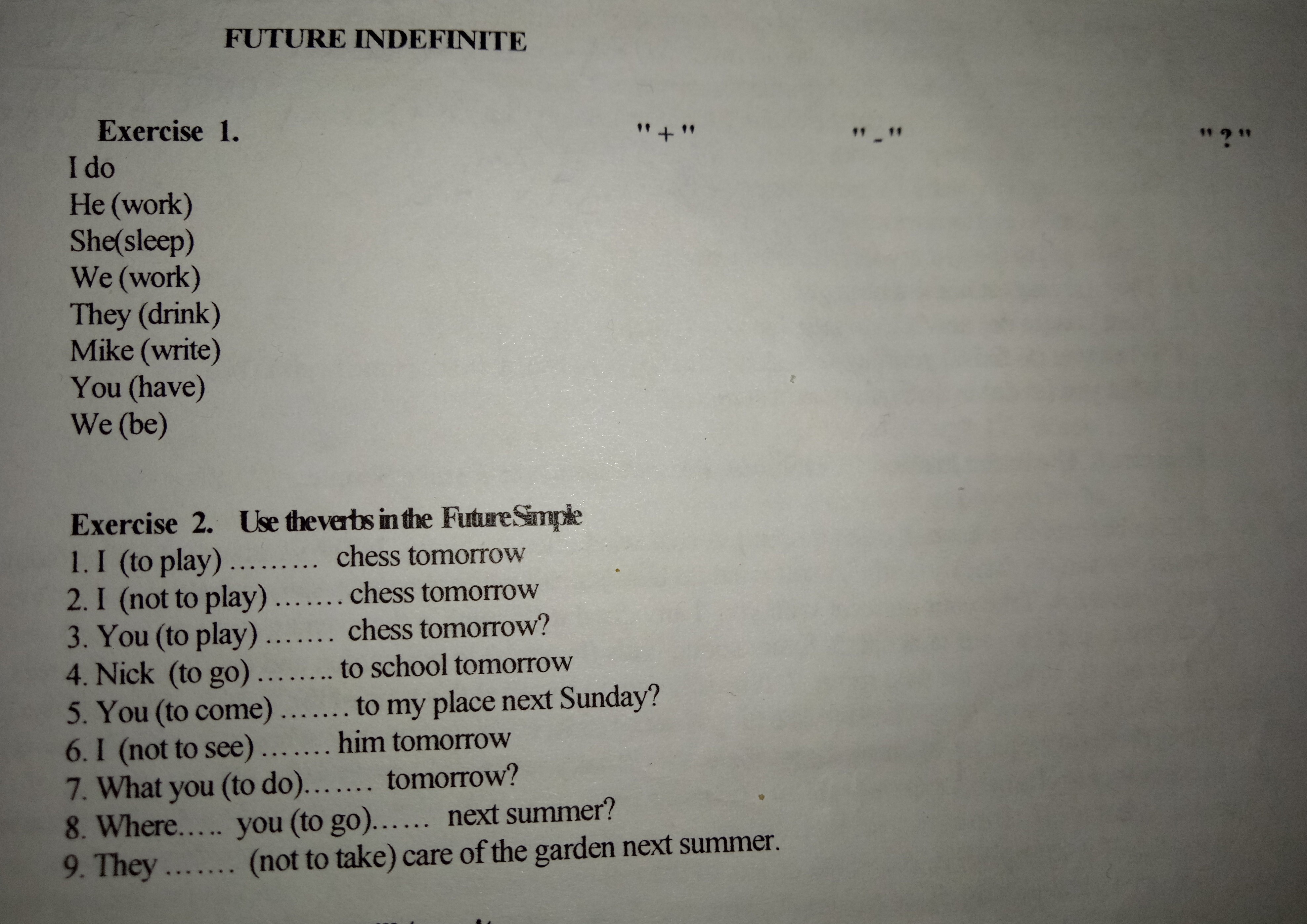 #2 1. I'll play chess tomorrow.