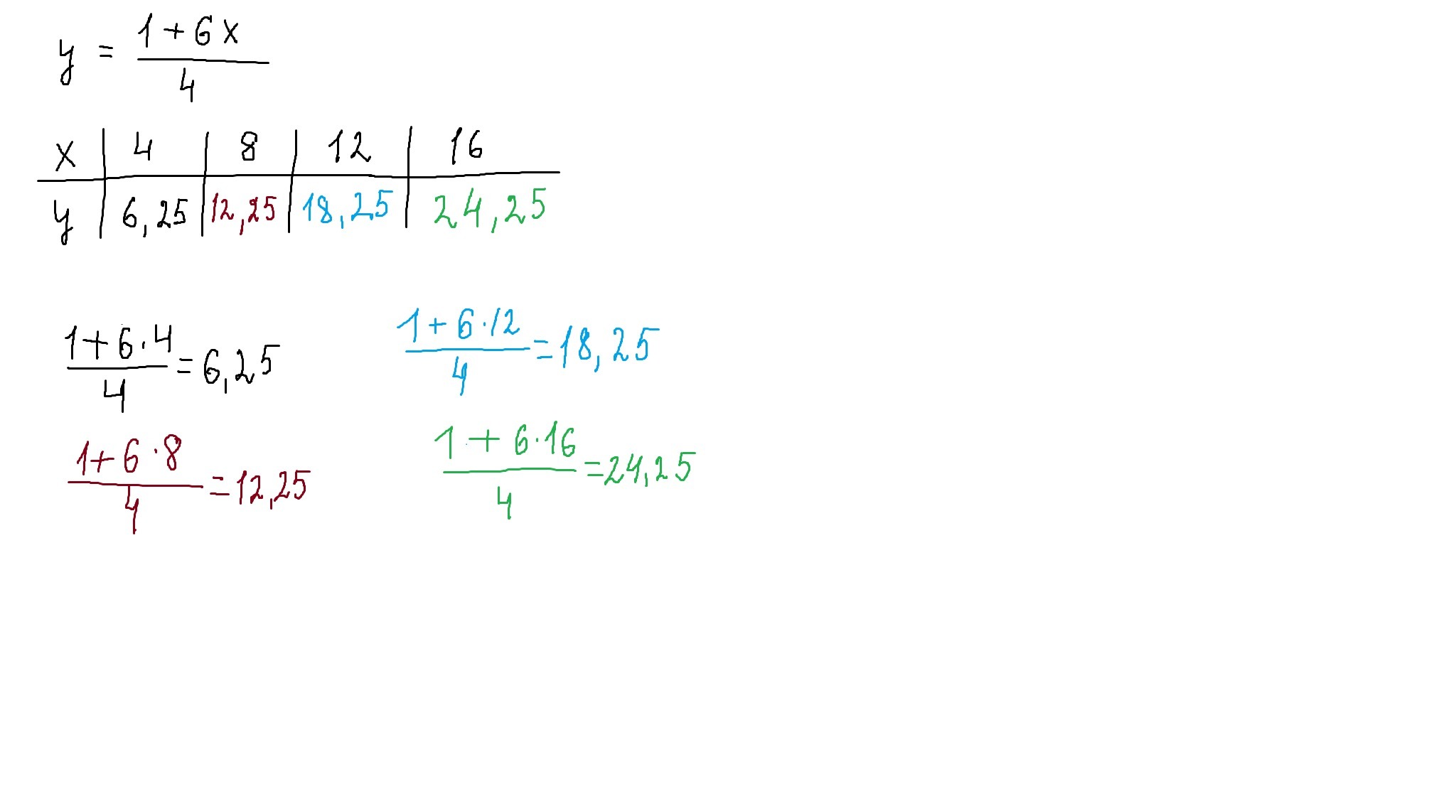 x = 16, y = 24.25
