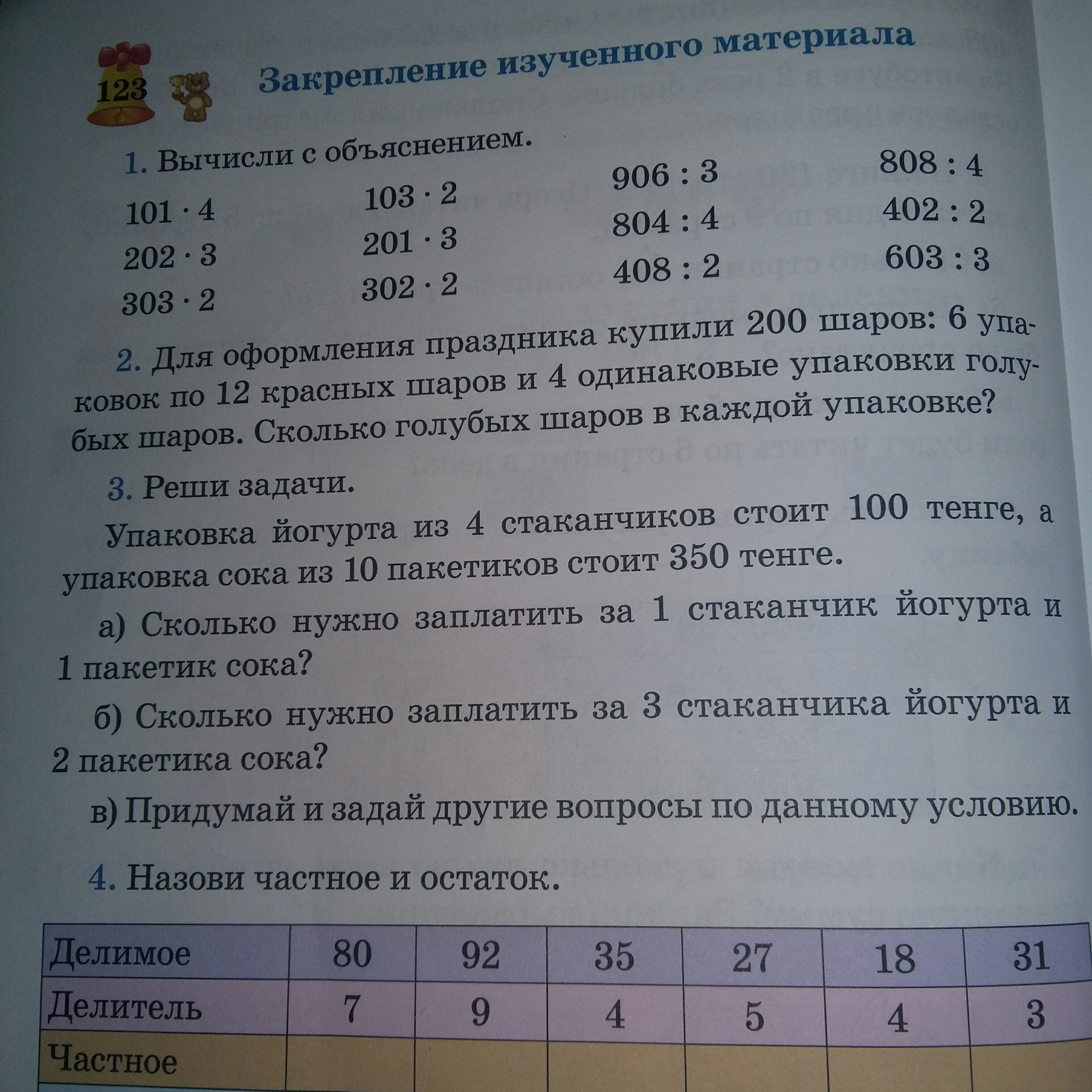 1) 35*2+25*3=145(т) стоят три стаканчика йогурта и два пакетика сока