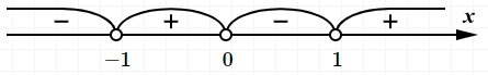 Наносим найденные точки на числовую ось и вычисляем знаки на каждом интервале