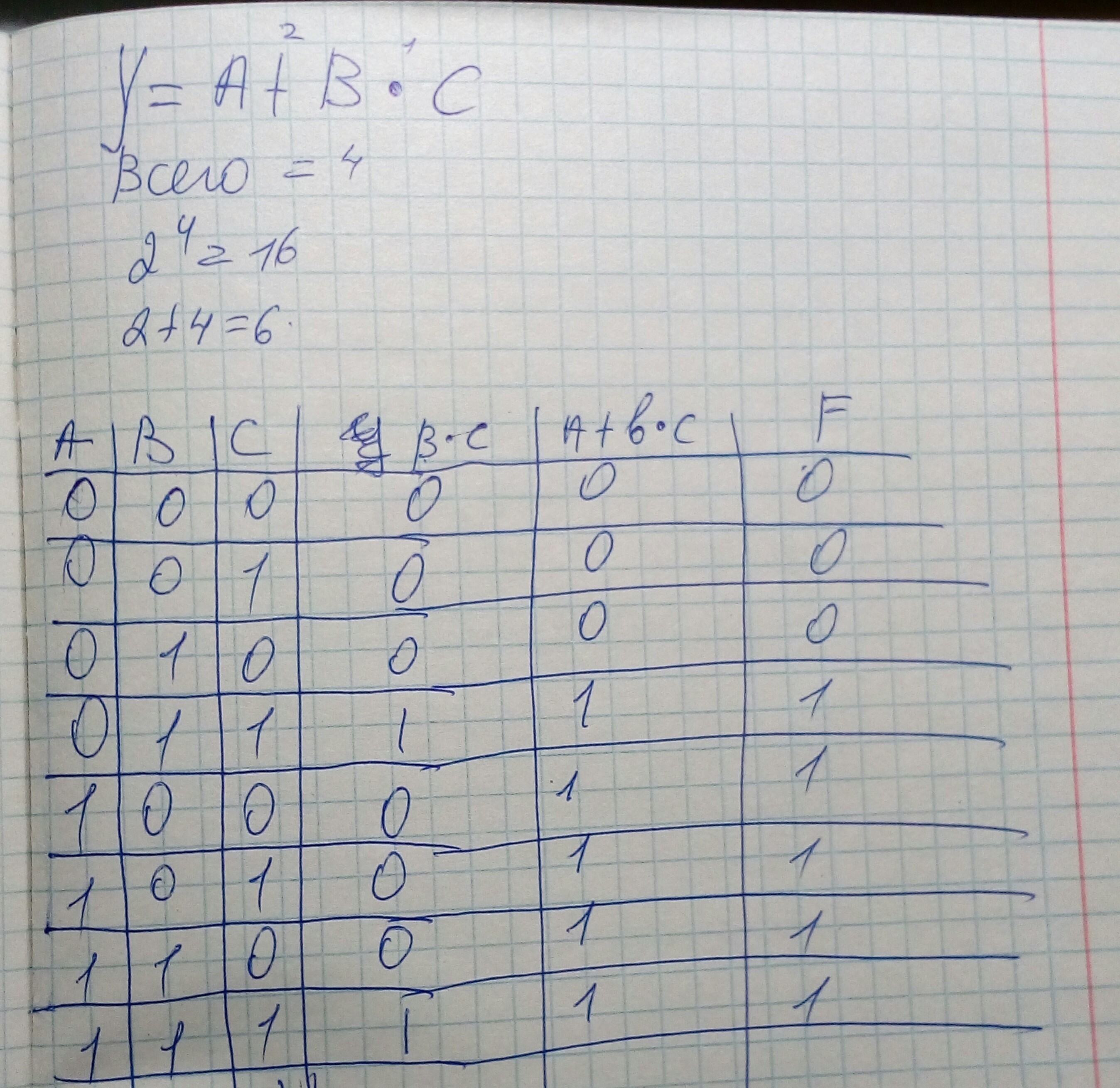 Сделайте пожалуйста таблицу истинности Y=A+B*C