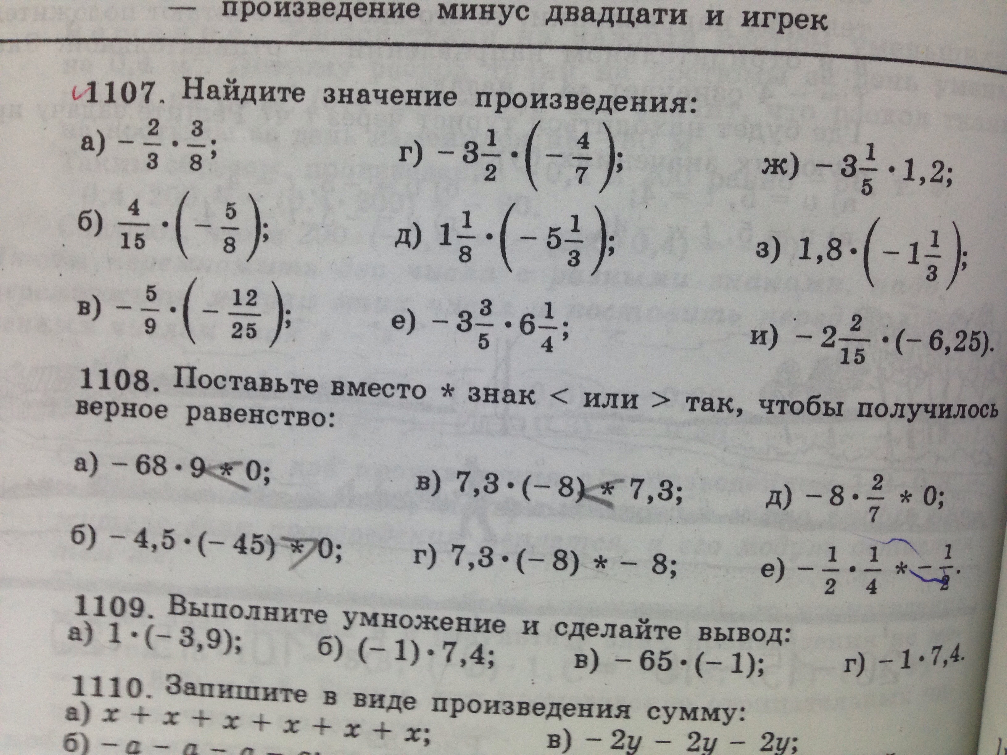 При умножении одного отрицательного числа на положительное ставится знак минус. при умножении двух отрицательных чисел ставится знак плюс