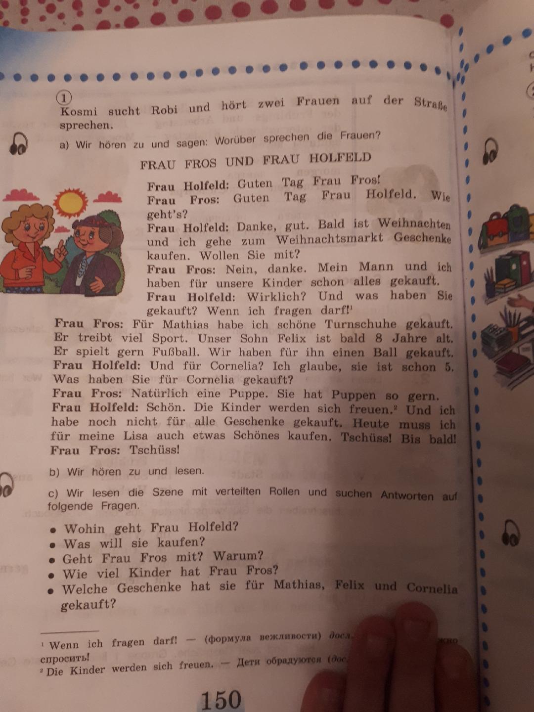 Г. Фрос: для Матиаса купила я прекрасные кроссовки. Он много занимается спортом. Нашему сыну Феликса скоро 8 лет. Он охотно играет в футбол. Мы для него купили мяч.
