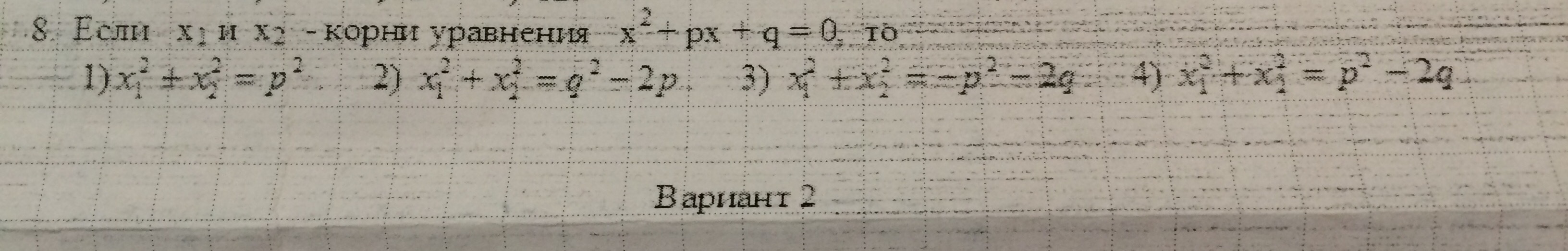Ответ: x1² + x2² = p² - 2q, вариант 4).