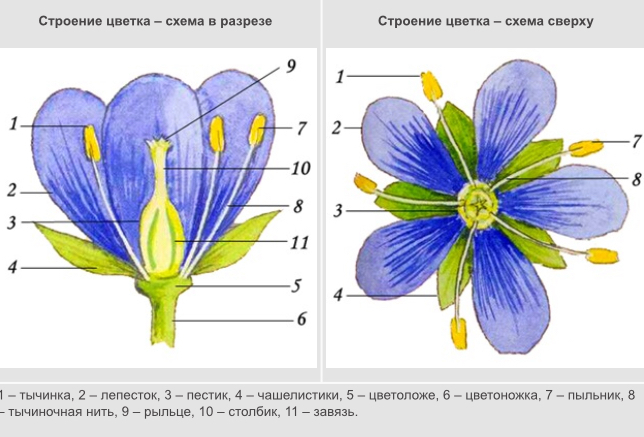 В любом цветке есть тычинка,лепесток,пестик,рыльце,столбик,завязь и прочие