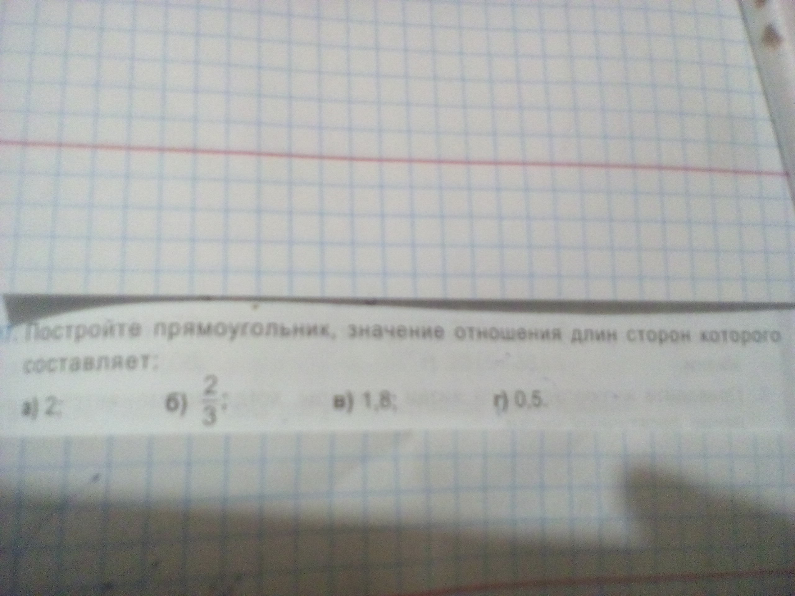 Постройки прямоугольник, значение отношения длин сторон которого составляет:а) 2; б) 2/3;в) 1,8;г) 0,5