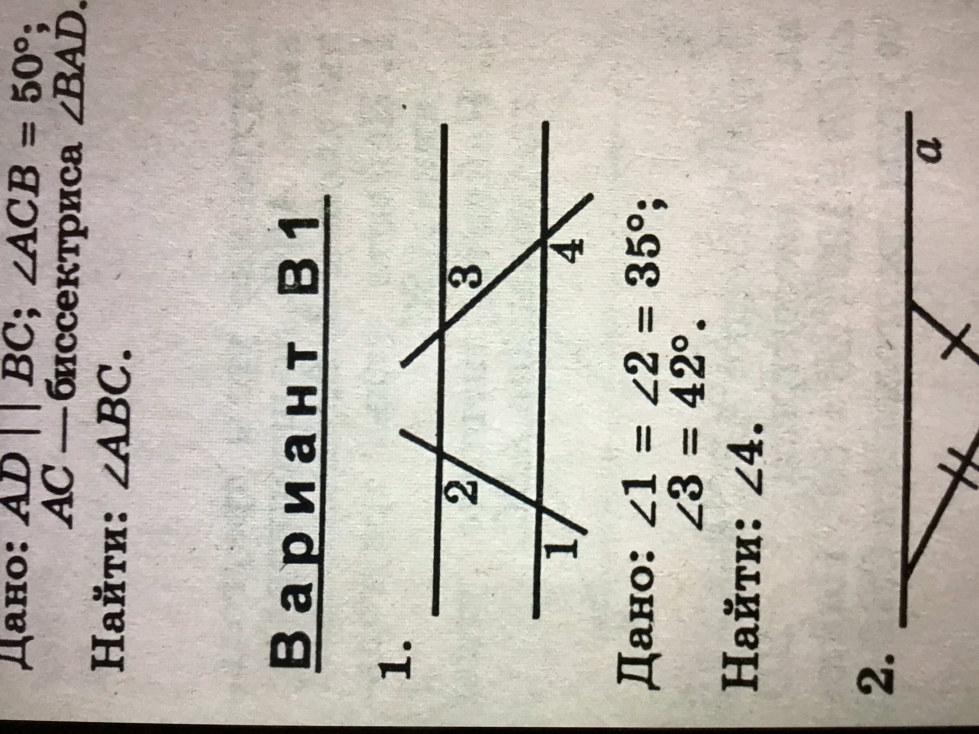 Срочно ребята, помогите решить задачу 1. Дано: угол 1 = углу2 =35град, угол 3=42град. Найти: угол 4.