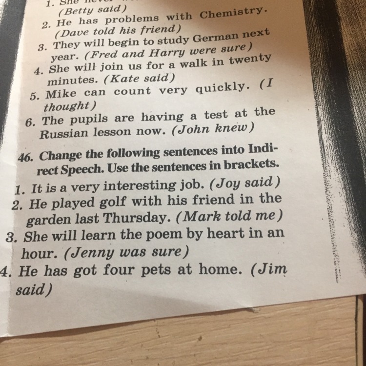 2.Mark told me that he had played golf with his friend in the graden last Thursday