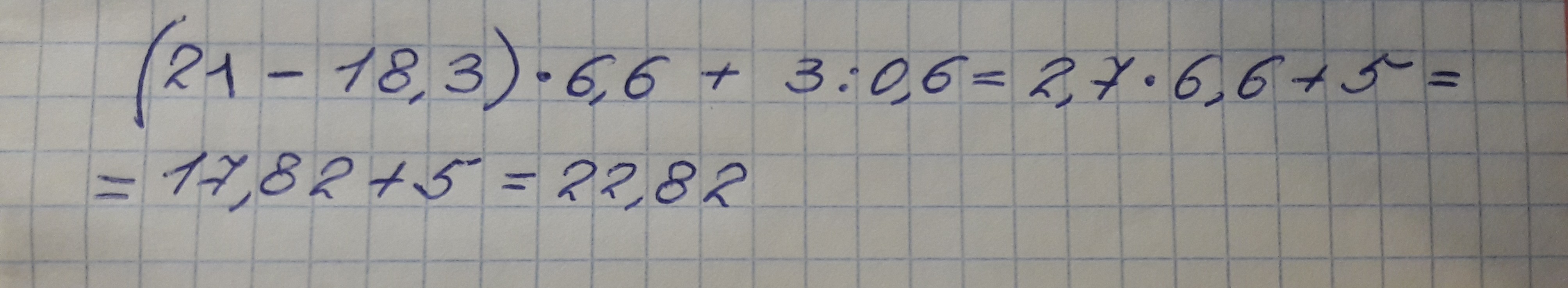 напишите решение (21-18,3)х6,6+3:0,6