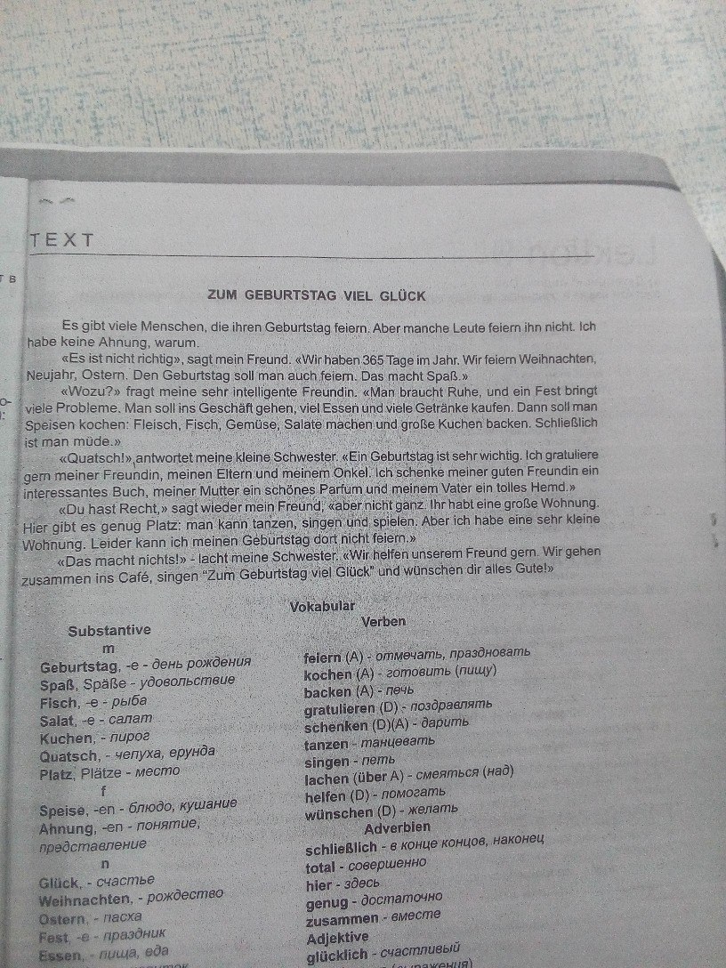 "Ты права," сказал снова мой друг, "но не всегда вы имеете большую квартиру. Здесь должно быть достаточно места: что бы можно было танцевать, петь и играть. Но у меня маленькое жилище. К сожалению, я не могу праздновать свой день рождения."