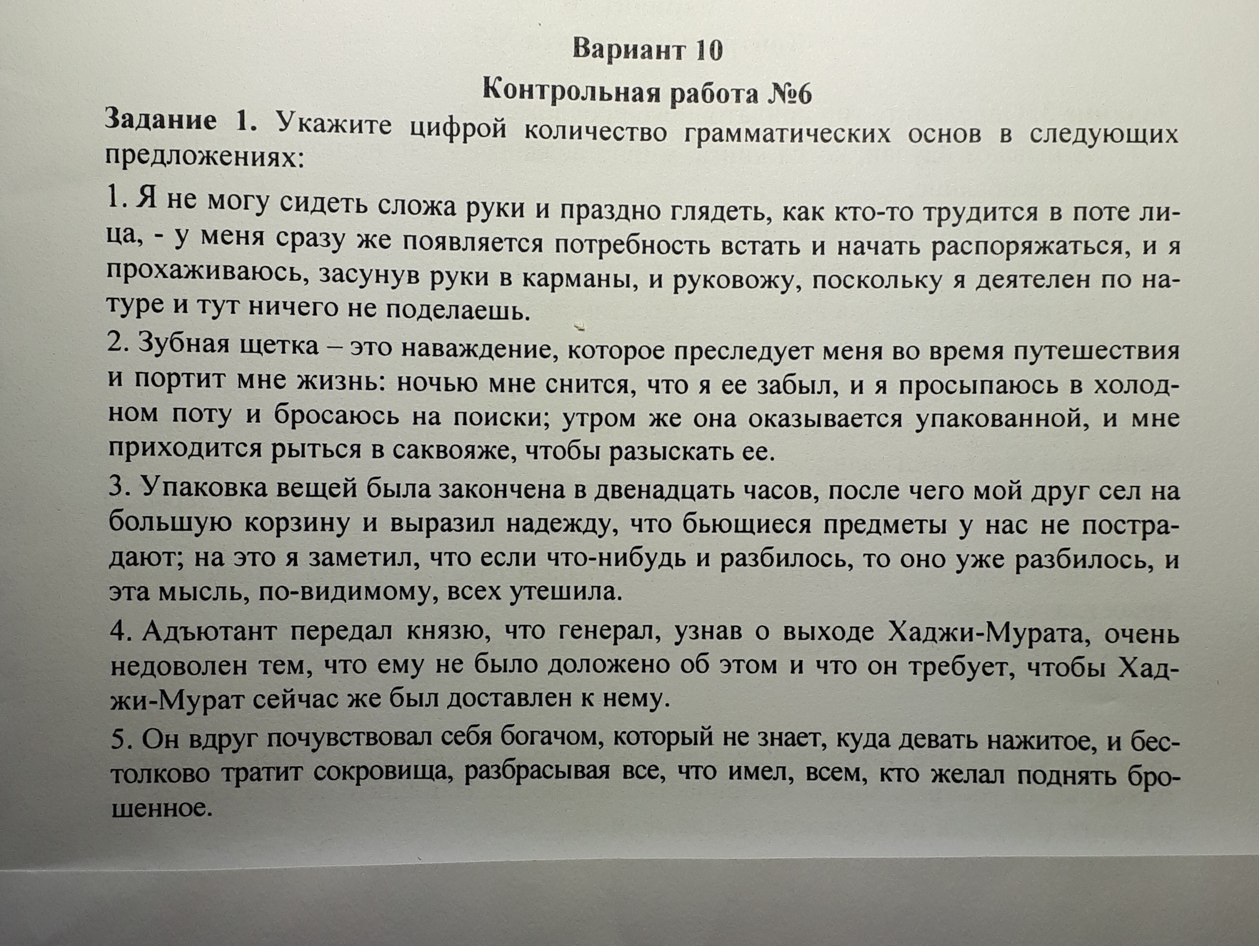 60 балов. Укажите цифрой количество грамматических основ в следующих предложениях:
