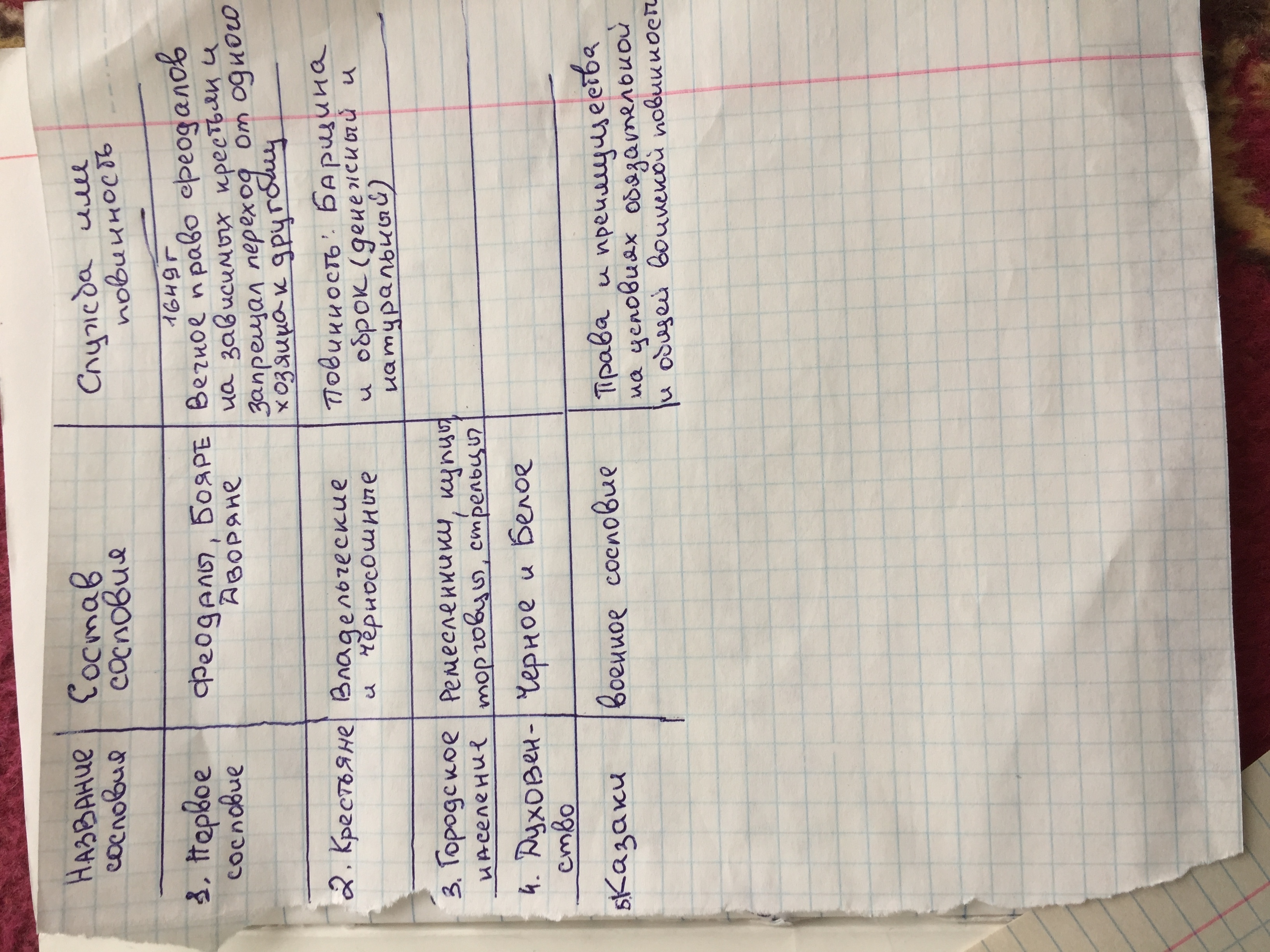 Сословия / состав / правовое положение/ обязанности и повинности / изменения в положении !!!