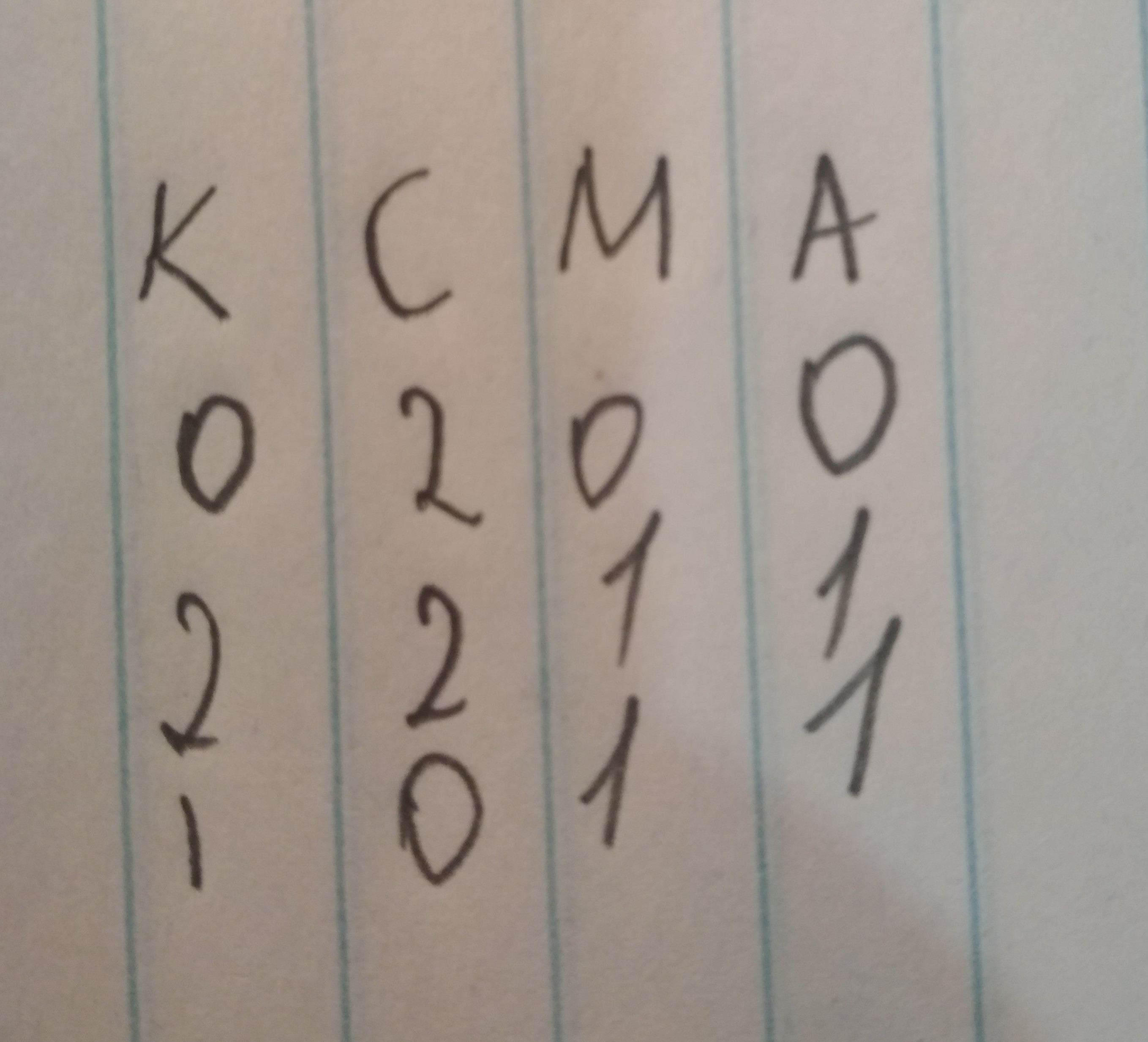 Катя, Саша, Максим и Аня сыграли круговой турнир в крестики-нолики. Саша выиграл у Кати и Ани. Максим проиграл Кате и выиграл у Саши, а с Аней сыграл вничью. Катя и Аня сыграли вничью. Заполни таблицу этого турнира (за победу 2 очка, за ничью 1 очко, за поражение 0 очков)
