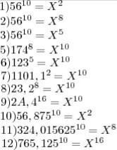 Помогите пожалуйста!!! Нужно выполнить указанные переводы чисел из одной системы в другую.