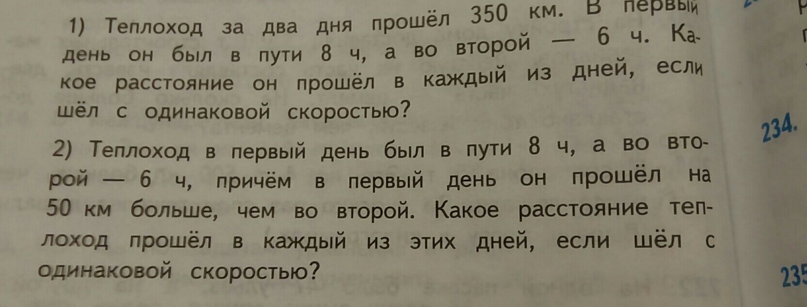 1. 8 - 6 = 2 (ч) - на два часа больше был в пути в первый день теплоход