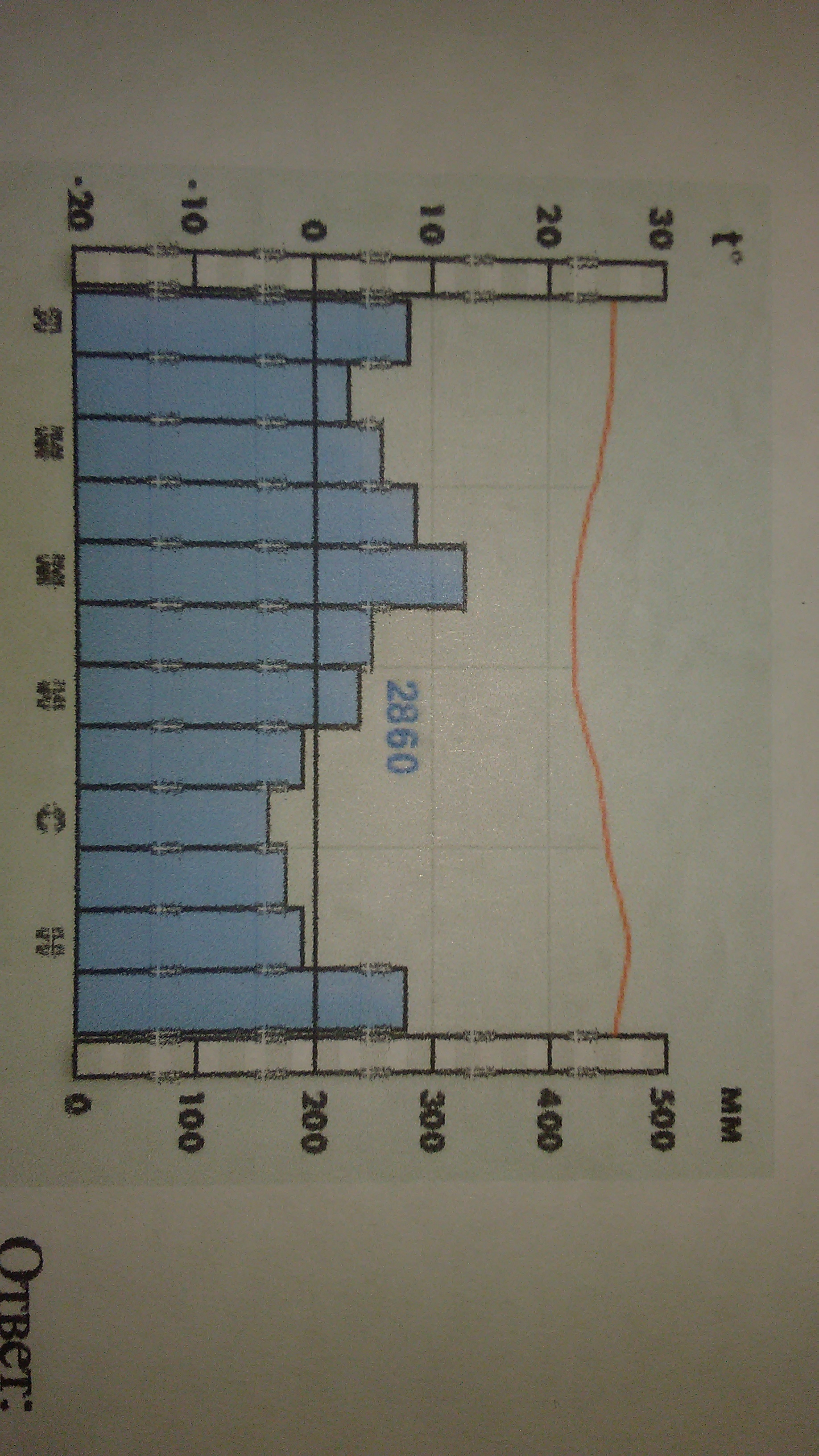 Проанализируйте климатограмму и опредилите тип климата Южной Америки.
