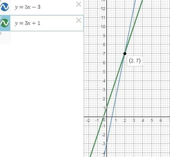1) у=5икс-3 и у=3икс+1;