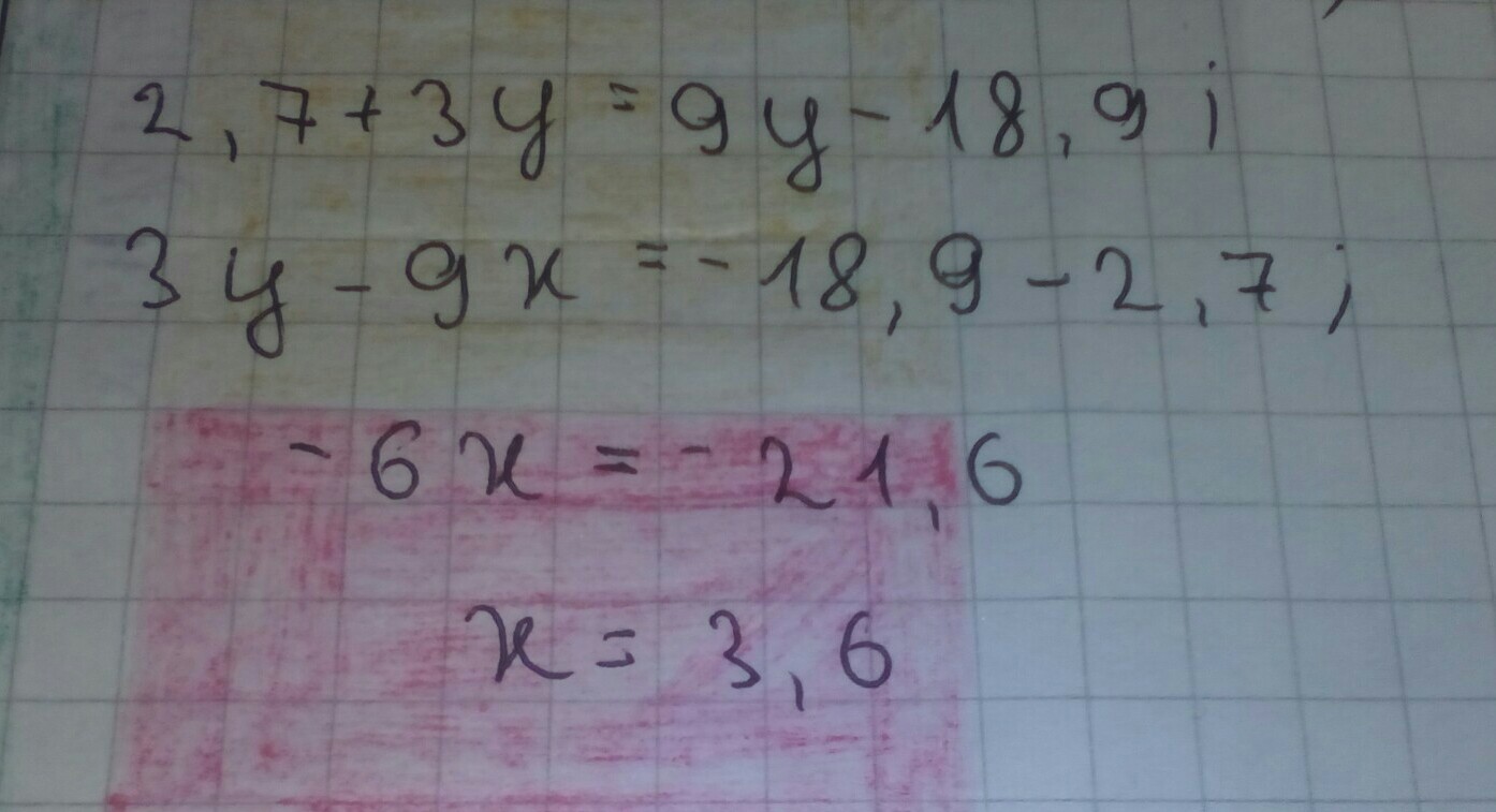 Помогите пожалуйта! Решить пример: 2,7+3у=9(у-2,1)
