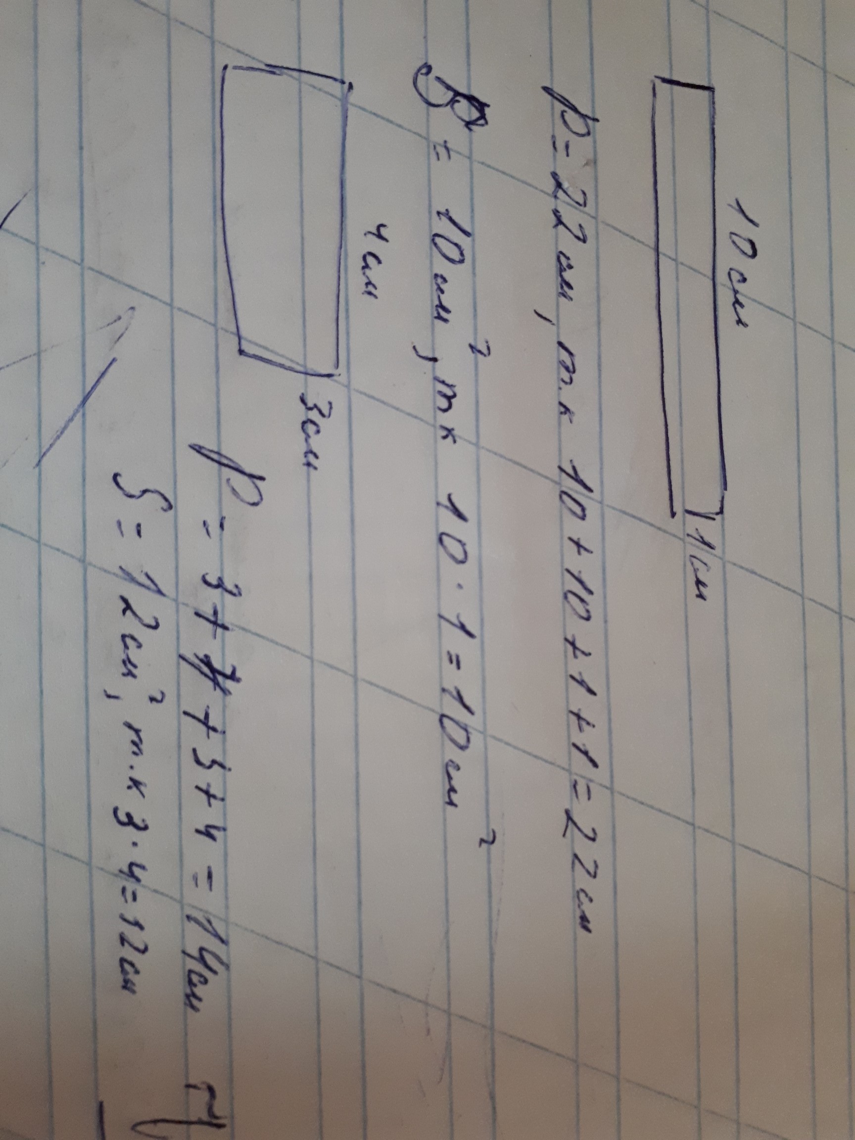 Построй два таких прямоугольника,чтобы периметр первого был больше,чем периметр второго,а площадь первого была меньше,чем площадь второго.