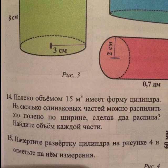 Или ( если можно пилить два бревна одновременно ) то тогда 4 и их объем составляет 15:4=3.75м3