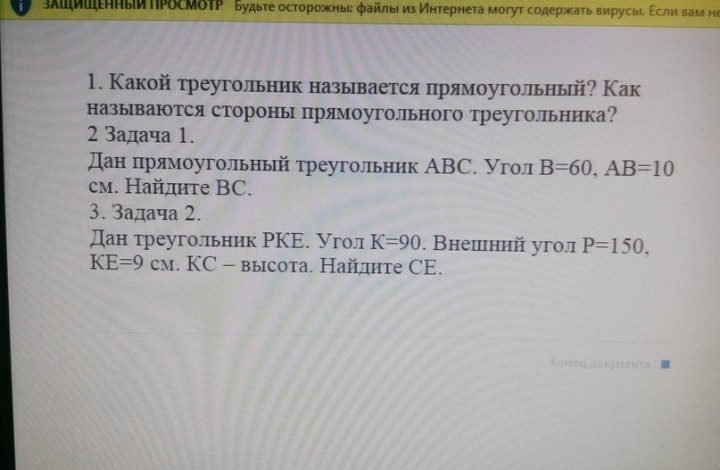 3) Дано: ∆ КРЕ , <К=90°, < 1= 150°, КЕ=9см