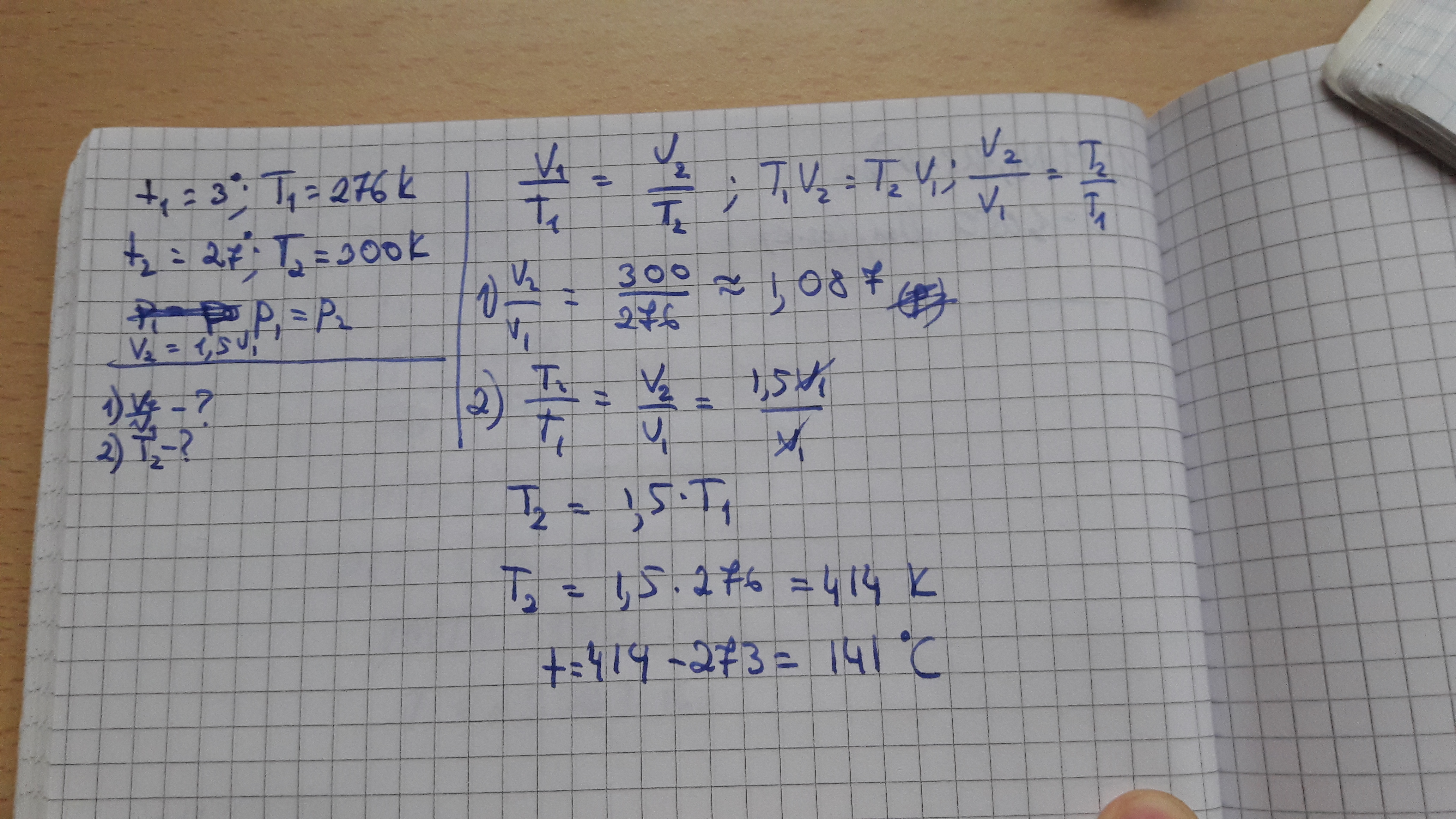 Во сколько раз увеличится объем воздушного шара, если его внести с улицы в теплое помещение? Температура на улице — 3° С, в помещении 27°С.