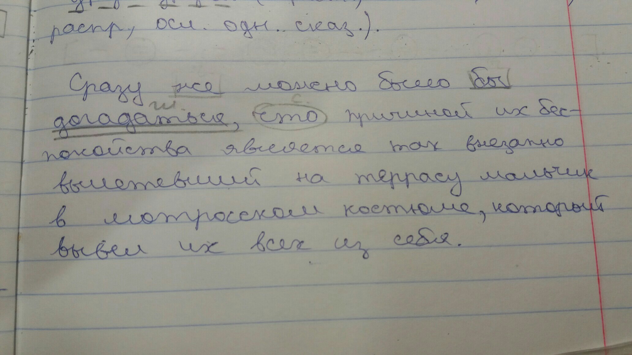 Сделайте синтаксический разбор предложения на картинке. Укажите только части речи и как подчёркивается. И дальше я сама!