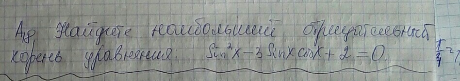 Сначало разложил 2 по основному тригонометрическому уравнению (косинус квадрат плюс синус квадрат равняет. единице), дальше все уравнение поделил на косинус квадрат( там без одз если косинус, а синус хз), после заменил тангенс на переменую ,а, записал на неё ограничение, дискрименант получился отриц. значит корней нету